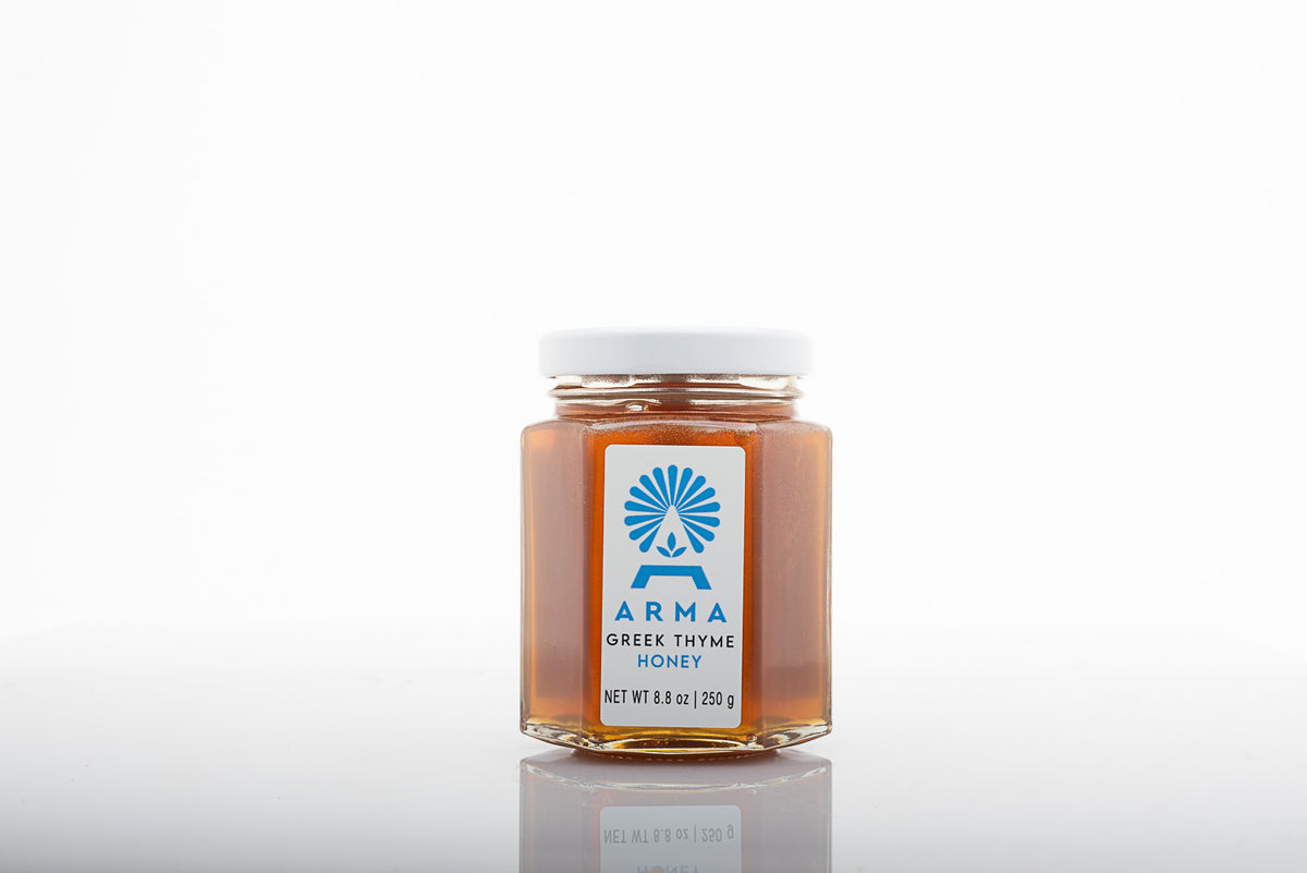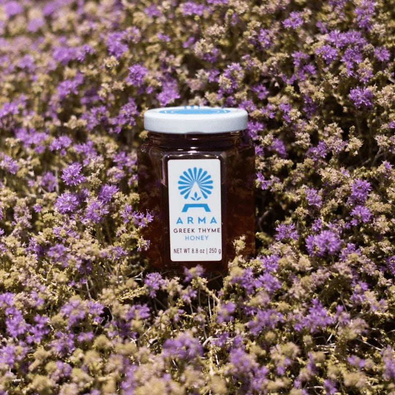 The bees gather pollen mainly from hardy thyme brushes - uniquely suited to survive the harsh arid landscape - Arma's monofloral honey will leave a lasting impression on your taste buds, body and mind.